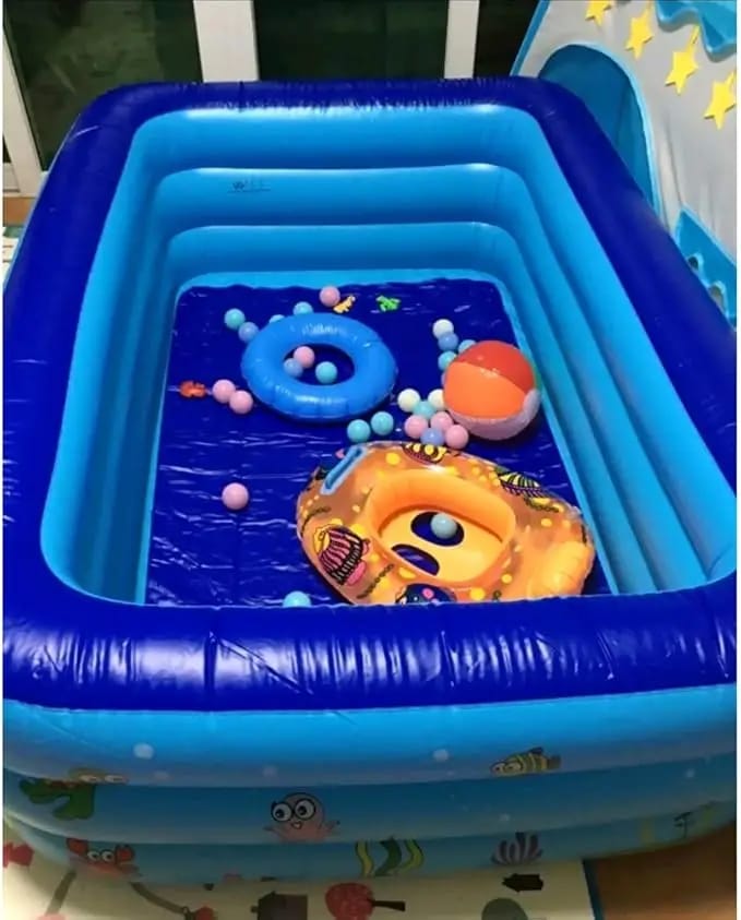 حمام سباحة قابل للنفخ مصمم ليمنحك تجربة سباحة ممتعة وآمنة في المنزل دون الحاجة إلى تركيب معقد. مصنوع من خامات PVC عالية الجودة مقاومة للثقب والتآكل، ليضمن استخدامًا طويل الأمد. يتميز بجدران جانبية سميكة وقاعدة مريحة تساعد على الثبات وتوفير أقصى درجات الأمان للأطفال والكبار.
